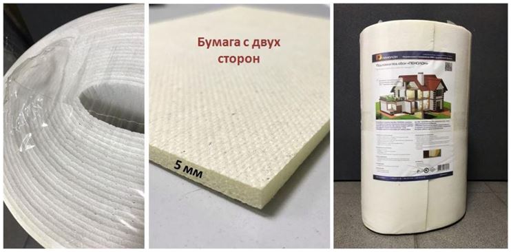 Подложка под обои производится в рулонах шириной 0,5м. Намотка – 14м.п.