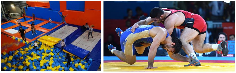 Он менее плотный и долговечный, нежели ППЭ, однако, не менее популярный. Подходит для батутных центров, где нагрузка на покрытия (особенно стен) меньше, чем у борцов.