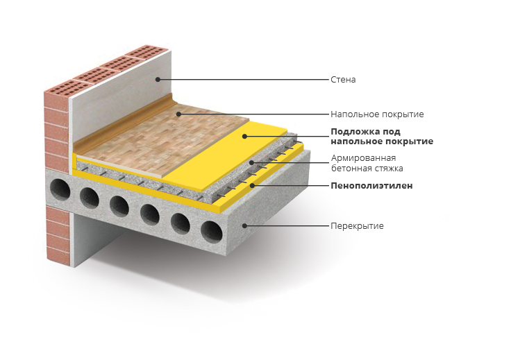 Рис. 1. Плавающий пол с пенополиэтиленом в качестве звукоизоляции.
