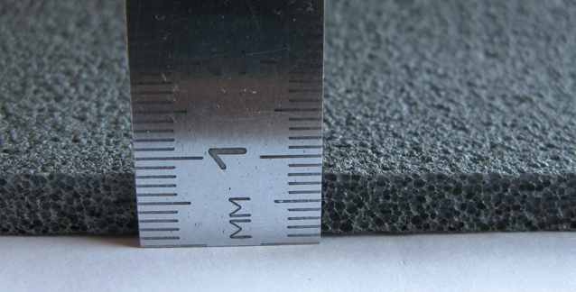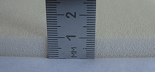 На вид ППЭ-ХС это эластичный, почти белый с заметным желтоватым оттенком (либо серый) материал шириной до 2м (как правило 1.5м), толщиной от 4мм до 15мм – в рулонах, от 20 мм и толще -- в листах как правило 1м х 2м. Структура закрытопористая, материал геометрически ровный. Размер поры трудно различим глазом (менее 1мм), поверхность слегка шероховатая (смотри Рис .1). Подробнее